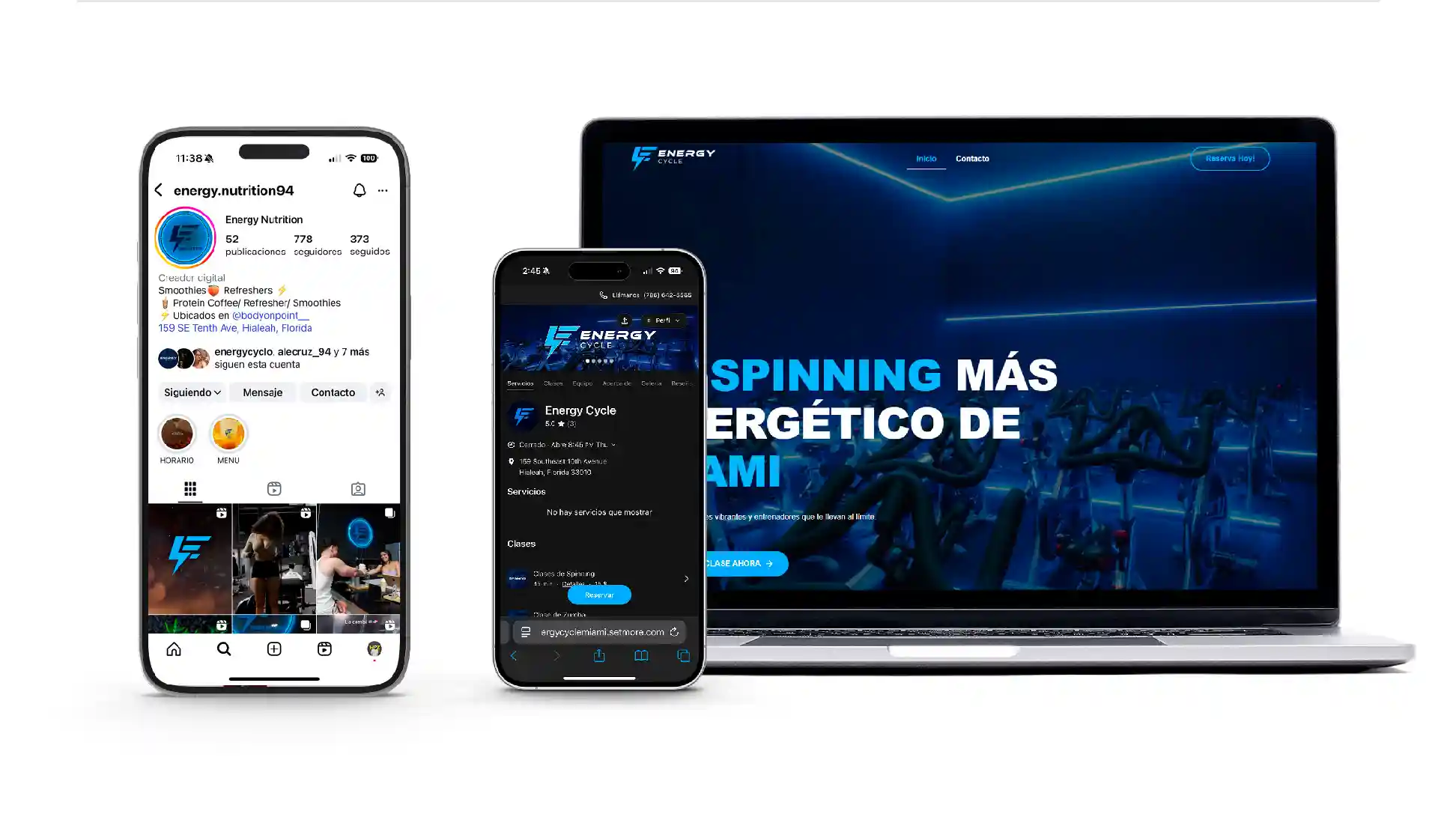 Energy Cycle is an indoor cycling club in Miami offering spinning, Zumba, and personal training classes. The challenge was to launch the brand and its digital presence to drive bookings quickly and easily.